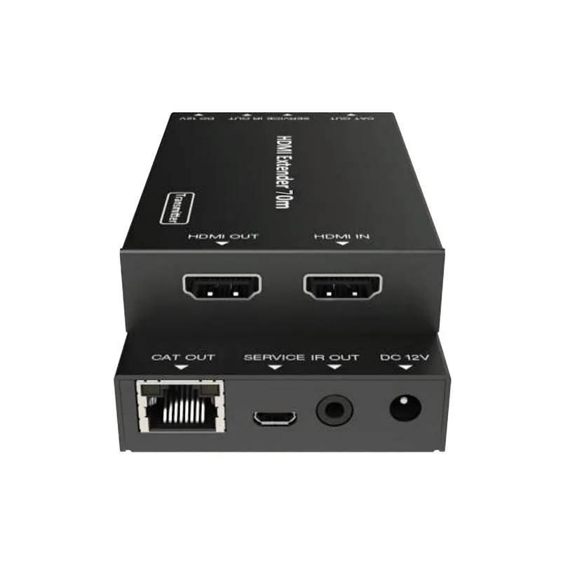 This HDMI extender can extend hd audio and video signals and IR control signals by 70m (1080p resolution) or 40m (4K30 resolution) over a single Class 6 cable (CAT6), achieving long distance and high quality transmission with zero delay between the signal source and the display deviceSupport local HDMI signal loop, and can be cascading to another extension device video resolution up to 4K2K@30Hz 4:4:4 support EDID copy function (local or remote EDID can be selected) support PCM7.1,Dolby True HD,DTS HD and other audio formats the productionIt is widely used in multimedia video conferencing, distance learning, and other large screen presentation scenarios.