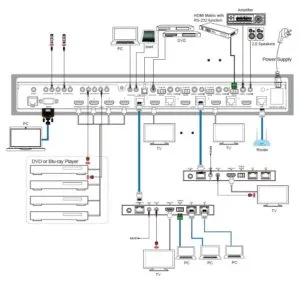 Output Ports | 4×HDMI OUTPUT [HDMI Type A, 19-pin female] 4×HDBaseT port [RJ45] 5×IR OUTPUT [3.5mm Stereo Mini-jack] 4×RS-232 [3-pin Phoenix connector] 4×SPDIF(COAX) 4×Stereo Audio[3.5mm Stereo Mini-jack] 1×LAN [RJ45] | |||||