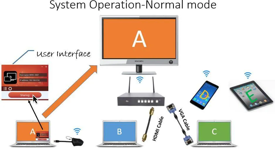 | “WirelessMedia C” | Support 1080P maximum 30frm/s over wireless channel Adopt H.264 compression tech on the transmitter 35m distance between transmitter and base unit, “Auto-password” for each meeting or class for security, Real-time remote viewer of the main screen from mobile device app, |