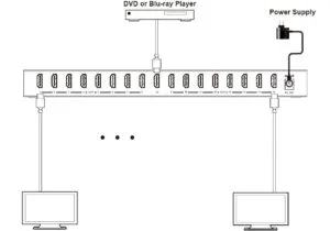 HS-HD-116 18Gbps 1×16 HDMI Splitter can distribute 1 HDMI source signal to 16 HDMI display devices synchronously. Supported video resolution is up to 4K2K@50/60Hz 4:4:4. The product supports advanced EDID management. It also supports HDR, HDR10, HDR10+, HLG and Dolby vision function. This product is widely used in multimedia conference halls, TV teaching, large-screen display projects and other places.